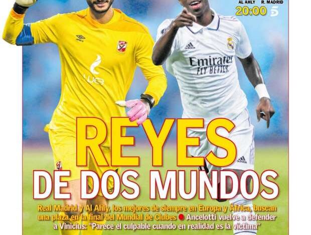 وكتبت الصحيفة الإسبانية على الغلاف تقول: «ملوك عالميون، يبحث ريال مدريد والأهلي، الأفضل على الإطلاق في أوروبا وإفريقيا، عن مكان في نهائي كأس العالم للأندية».