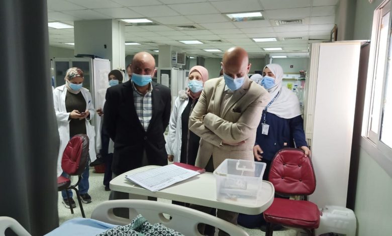 كما أكد علي سرعة الإنتهاء من بعض الرواكد الموجودة بالمستشفي، والتأكيد علي أعمال التطهير والتعقيم والجرد اليومي لكافة الأقسام الطبية، والاهتمام بالمستوي الجيد للنظافة العامة داخل وخارج المستشفي