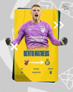 من جهة ثانية أعلنت إدارة نادي النصر السعودي التوقيع رسمياً مع الحارس البرازيلي “بينتو ماثيوس”، قادماً من صفوف نادي أتلتيكو باراناينسي البرازيلي بعقد يمتد حتى عام 2028.
