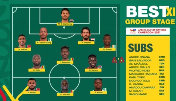 أعلن الاتحاد الأفريقى لكرة القدم “كاف” التشكيل المثالى فى مباريات الدور الأول لبطولة كأس الأم الأفريقية التى تقام فى الكاميرون خلال الفترة من 9 يناير حتى 6 فبراير 2022.