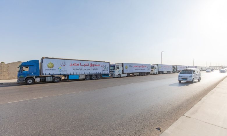 صندوق تحيا مصر يطلق 101 شاحنة تزن 1616طن لإغاثة أهل غزة