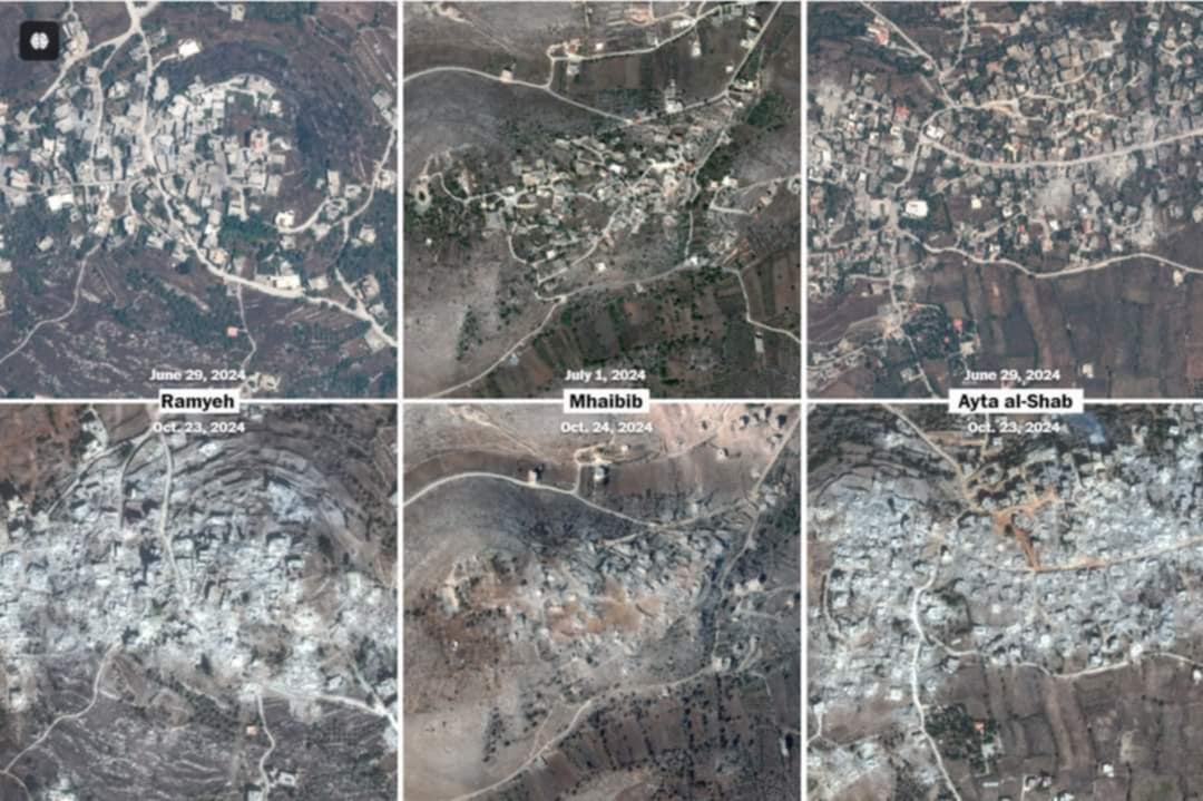 وأحدثت الطائرات الحربية الإسرائيلية والقوات البرية دماراً هائلاً في جنوب لبنان خلال الشهر الماضي، إذ تقول إسرائيل إن الهدف هو إضعاف جماعة “حزب الله” اللبنانية، ودفعها بعيداً عن الحدود وإنهاء التصعيد بين الجانبين، الذي اندلع منذ أكثر من عام.وباستخدام صور الأقمار الاصطناعية التي قدمتها Planet Labs PBC، حددت “أسوشيتد برس” خطاً من 11 قرية، تقع جميعها ضمن مسافة 4 أميال (6.5 كيلومترات) من حدود لبنان مع إسرائيل وتضررت بشدة الشهر الماضي، إما بسبب الضربات أو التفجيرات الإسرائيلية.