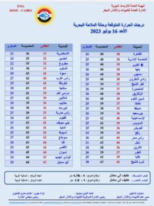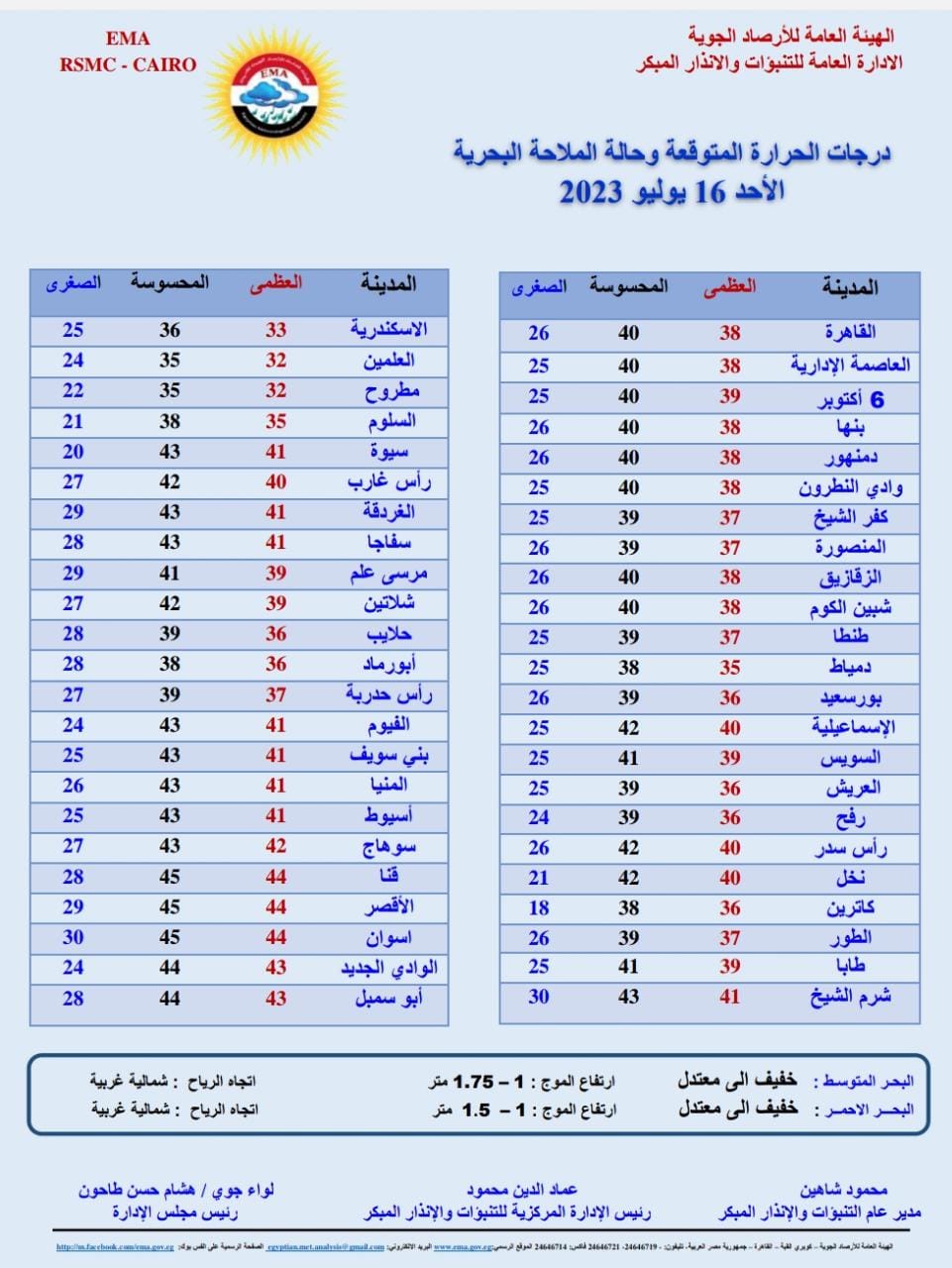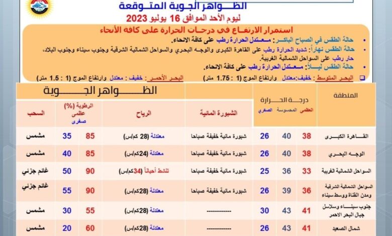 درجات الحرارة المتوقعة اليوم الأحد 16 يوليو 2023