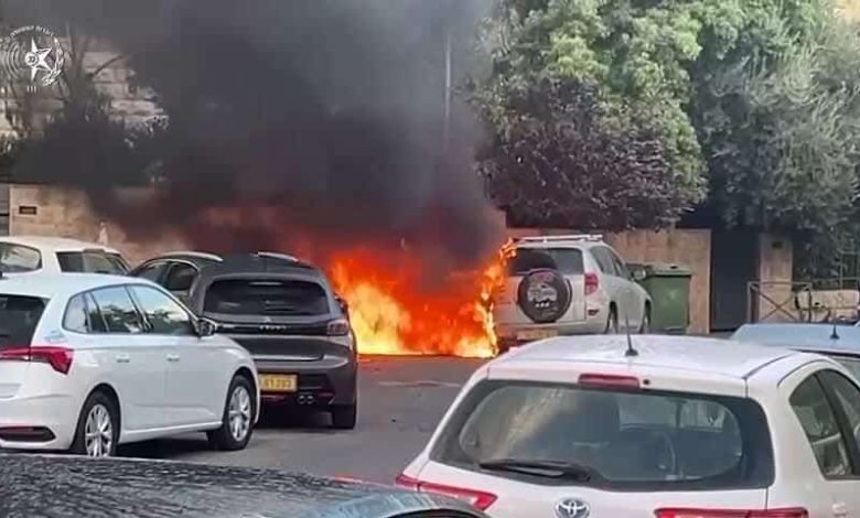 عائلات الاسري يحرقون السيارات أمام منزل نتنياهو