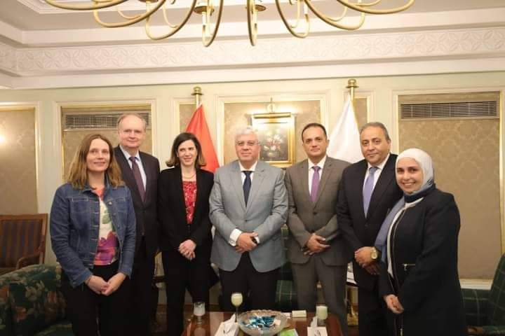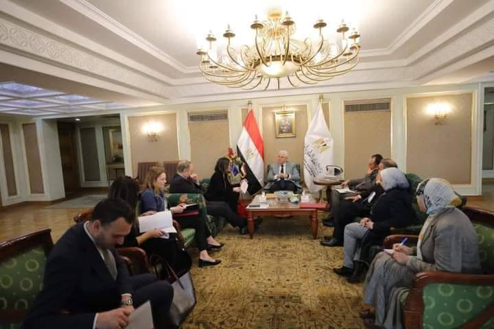 وزير التعليم العالي والبحث العلمي ماريا كريستينا روسو مدير إدارة النهج العالمى والتعاون الدولى فى البحوث والابتكار بالمفوضية الأوروبية، والسفيرة كريستيان برجر سفير الاتحاد الأوروبى بالقاهرة والوفد المرافق لهما لبحث سبل تعزيز التعاون بين مصر ودول الاتحاد الأوروبى، وذلك بمقر الوزارة