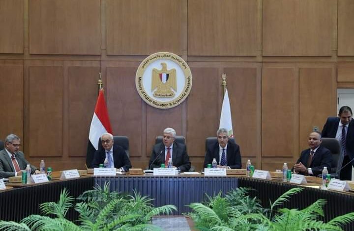 أيمن عاشور وزير التعليم العالي والبحث العلمي وبحضور الدكتور رضا حجازي وزير التربية والتعليم والتعليم الفني والدكتور مصطفى رفعت أمين المجلس وأعضاء المجلس وذلك بمقر الوزارة بالعاصمة الإدارية الجديدة
