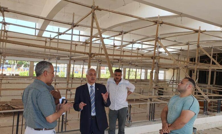 عبدالمولى يتفقد أعمال التطوير والتجديد بالصالة المغطاة بجامعة أسيوط