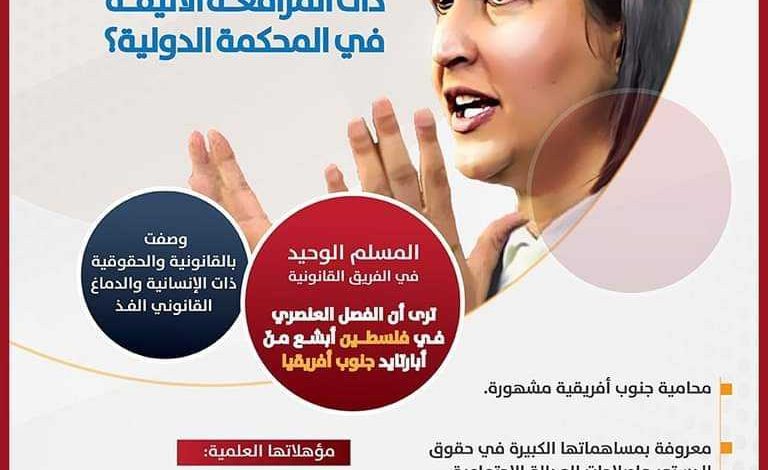 المحامية التي ترافعت ضد الاحتلال في محكمة العدل الدولية، والتي تصدر اسمها الأخبار والصحف العالمية ومواقع التواصل الاجتماعي. إذ تعد الفرد المسلم الوحيد ضمن الفريق القانوني الذي يمثل دولة جنوب أفريقيا ضد إسرائيل.