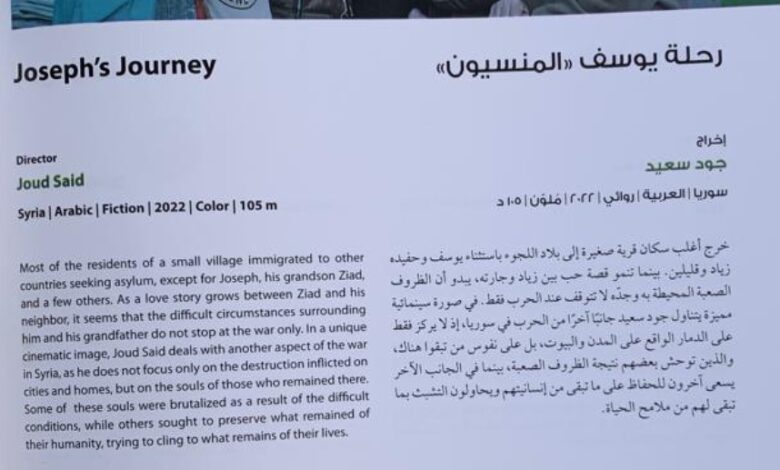 عرض فيلم “رحلة يوسف” في جمعية الفيلم- غدا