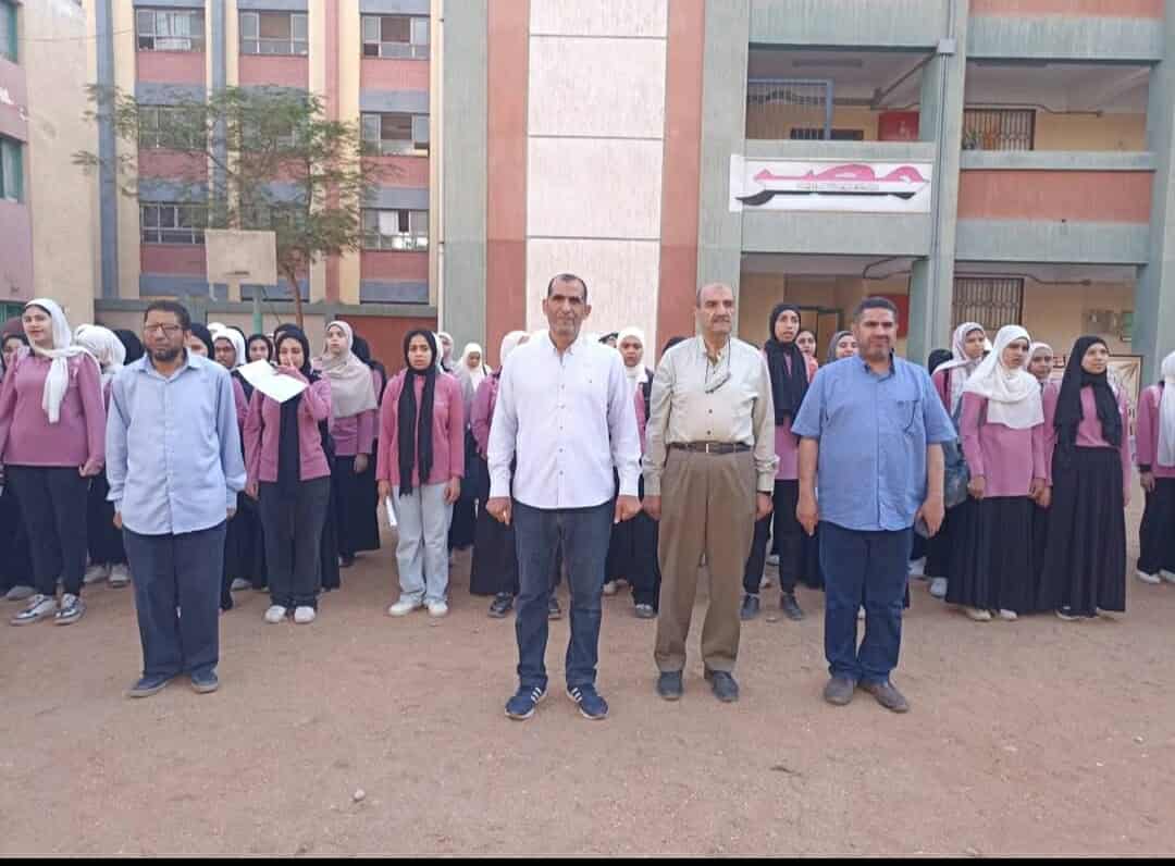 وبعد ذلك توجه لمتابعة مدرسة أسماء بنت أبي بكر الإعدادية بنات الفصول الرسمية الملحقة بها حيث تابع ايضا الفصول الدراسية والمكتبة وحجرات الأنشطة وحجرة الزائرة الصحية واطمان علي سير امتحانات الشهر.
