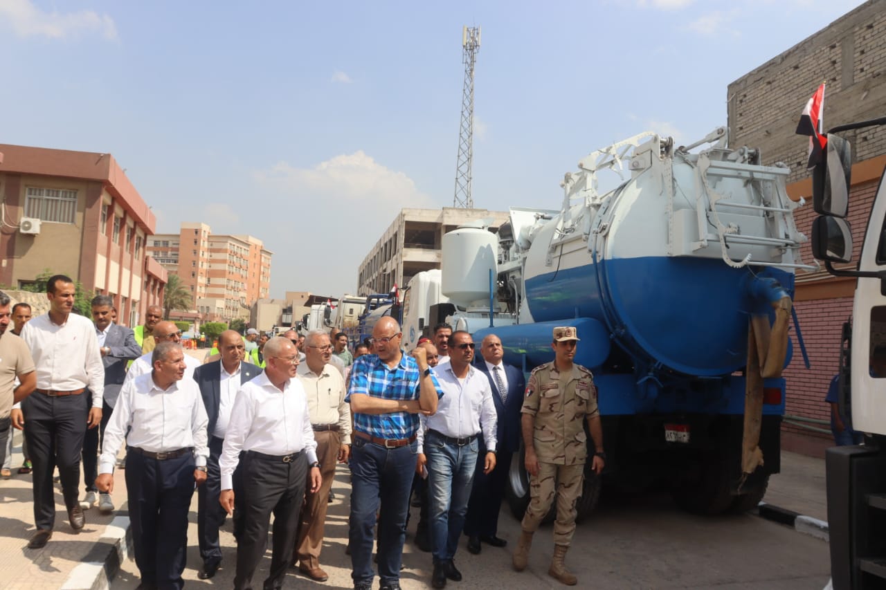 عطيه يتفقد اصطفاف معدات شركة مياه الشرب والصرف الصحي بالقليوبية