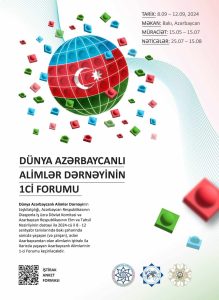 ينظم الاتحاد العالمي للعلماء الأذربيجانيين المنتدى الأول للعلماء الأذربيجانيين الذين يعملون في خارج أذربيجان والذين أصلهم من أذربيجان ويعيشون في الخارج، وذلك بدعم من اللجنة الحكومية للعمل مع المغتربين في جمهورية أذربيجان ووزارة التربية والتعليم العالي في الجمهورية في الفترة من 8 إلى 12 سبتمبر عام 2024 في مدينة باكو.