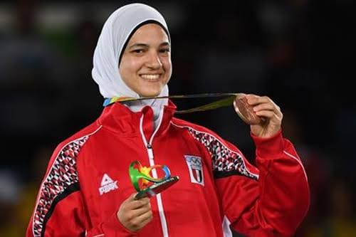 علاء أبو القاسم وهداية ملاك يحملان علم مصر فى أولمبياد طوكيو