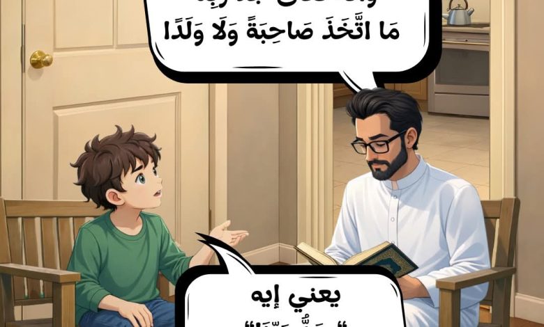 علمنى أبى (وَأَنَّهُ تَعَالَىٰ جَدُّ رَبِّنَا مَا اتَّخَذَ صَاحِبَةً وَلَا وَلَدًا﴾