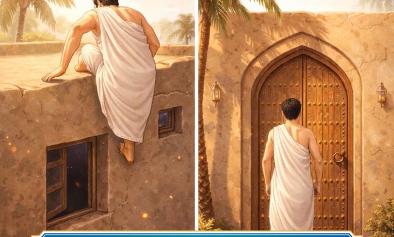 ما كانش يدخل من الباب. كان يلفّ من الخلف،