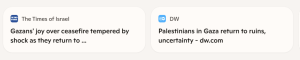 مع بدء تنفيذ اتفاق وقف إطلاق النار، عاد آلاف الفلسطينيين إلى أحيائهم المدمرة، حيث عبّر كثيرون عن فرحتهم بالعودة “إلى حيث كانت منازلهم، حتى لو فوق الركام”، في مشهد يجسد تمسكهم بالأرض رغم فقدان المأوى والموارد.