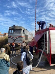 بعد توقف حركة القطار ما يقرب من ٣ ساعات بسبب نشوب حريق هائل في القطار رقم “537” خط (طنطا- القاهرة) أثناء توقفه بمحطة قطارات منوف في محافظة المنوفية في تمام الثامنة والنصف صباح اليوم الأحد.