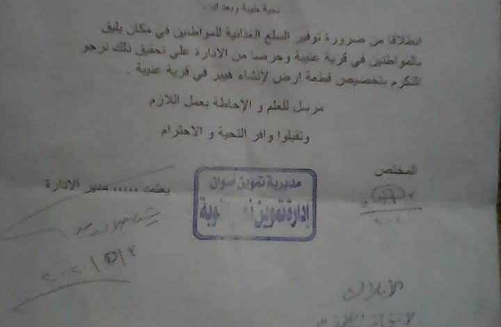 وتم مخاطبة ادارة تموين نصر النوبة بتحديد الموقع وارسال رسم كروكى وتم مخاطبة الشركة القابضة المصرية