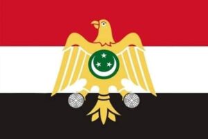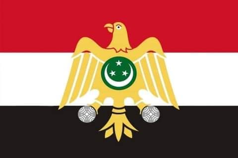 ٦- علم مصر خلال فترة ثورة الضباط الأحرار استخدام شعار ” النسر ضخم بداخله الهلال و الثلاث نجمات “.