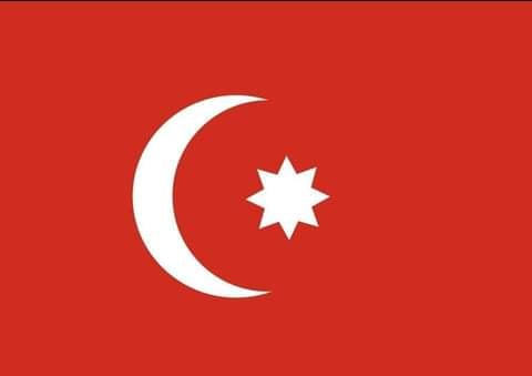 ٢- علم الدولة العثمانية ” هلال و نجمة سباعية “.
