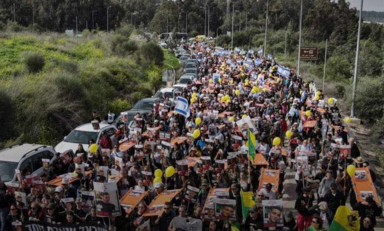 وكانت عائلات الأسرى قد انطلقت في مسيرة من بلدات غلاف غزة لـ5 أيام، وتُختتم السبت في القدس، مطالبة الحكومة بتغيير سلّم أولوياتها، ووقف الحرب، والتفرغ لإنجاح المفاوضات مع «حماس»، وإطلاق سراح الأسرى. وقال روبي حين، شقيق أحد الجنود المخطوفين، وأحد قادة المظاهرة، إن «العائلات تتمسك ببارقة أمل لتحرير الأبناء، لكن الحكومة تدير سياستها بطريقة تكبت الأمل. ونحن نتظاهر لكي نقنع الجمهور بضرورة تشديد الضغوط على الحكومة لكيتفهم أنه لا يوجد شيء أهم من إطلاق سراح الأسرى. مهما يكن الثمن يجب إطلاق سراحهم أحياء».