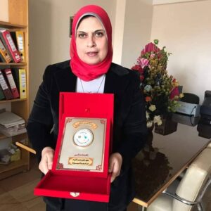 غانم تهنئ الدكتورة سحر عبد الباقي بجائزة النشر المتميز لعام 2022 بمعهد الأورام
