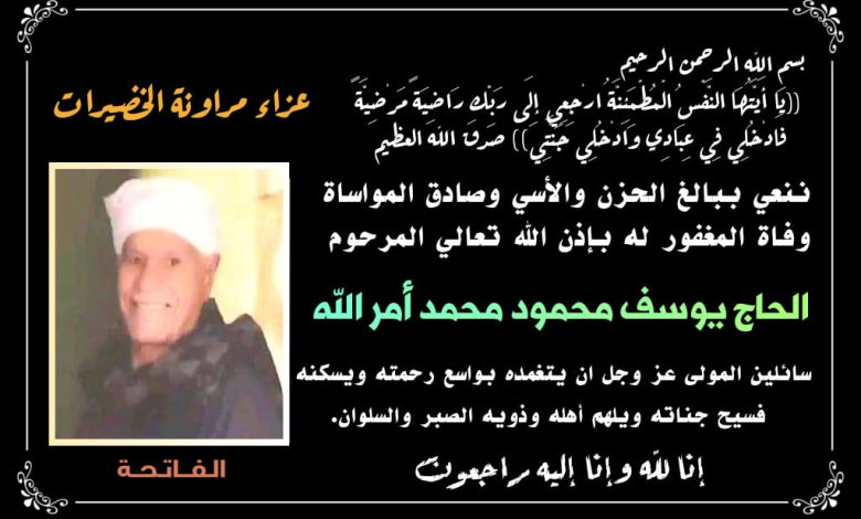 يتقدم الصحفي محمد فتحي المرواني بخالص العزاء لعائلة مراونة الخضيرات في وفاة الحاج يوسف محمود محمد أمر الله