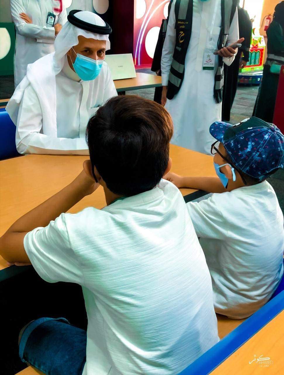 تقدمت مجموعة من متطوعات الفريق لاستقبال الأطفال ببطاقة اللعب المفتوح للاجهزة مع تنظيم الأدوار لإتخاذ الاحترازات الوقائية من فيروس كورونا لذلك تم توزيع مهام المتطوعات وفقًاً لتوقيت البرنامج بدايةً باللعب في الاجهزه الالكترونية مع الأطفال لما يقارب ساعة واحدة ثم ترحيلهم لغرفة الاحتفال بحضور رئيس مجلس إدارة جمعية تفاؤل بالأحساء الأستاذ محمد عبدالعزيز العفالق إذا قدم التهاني والتبريكات للأطفال وأولياء الأمور بمناسبة التفوق الدراسي وعيد الفطر المبارك وأخذ صور فوريه للذكرى لكل مع كل طفل