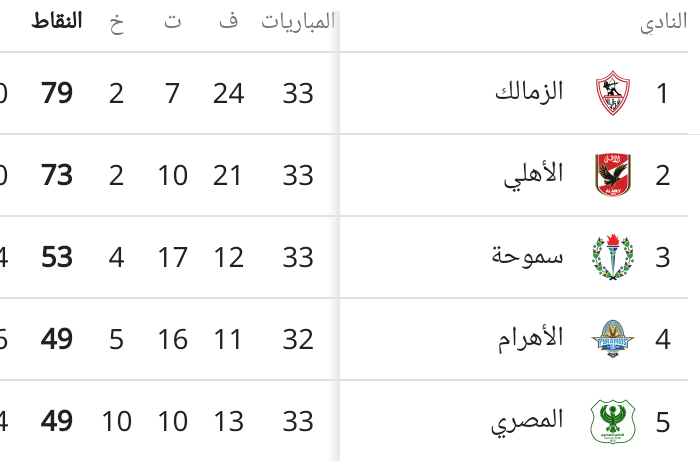 ولكني رأيت شيئا غريبا للغاية ..وهو إحتلال فريق سموحة السكندري المركز الثالث في ترتيب فرق الدوري الممتاز برصيد 53 نقطة وبفارق 4 نقاط عن فريقي بيراميدز الذي يأتي رابع الترتيب والمصري البورسعيدي خامس الترتيب ولكل منهما 49 نقطة