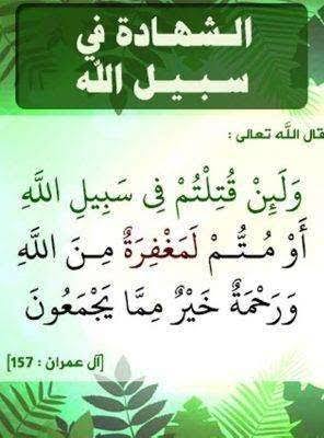وقَوْله تَعَالَى: {فَلْيُقَاتِل فِي سَبِيل اللَّهِ الَّذِينَ يَشْرُونَ الْحَيَاةَ الدُّنْيَا بِالآْخِرَةِ وَمَنْ يُقَاتِل فِي سَبِيل اللَّهِ فَيُقْتَل أَوْ يَغْلِبْ فَسَوْفَ نُؤْتِيهِ أَجْرًا عَظِيمًا} . (النساء / 74.)