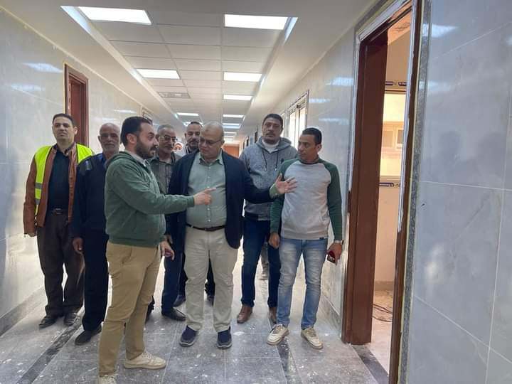 وحيث قام الدكتور ايهاب فوزى بتفقد قسم الاستقبال الجديد والذي يبلغ مساحته 948 متروتم توسعته إلى 2000 متر ويضم عناية مركزة وغرفه تدخلات جراحية و٤ عنابر عناية متوسطةوعنبر فحص مرضى وصيدلية و٤ غرف عزل