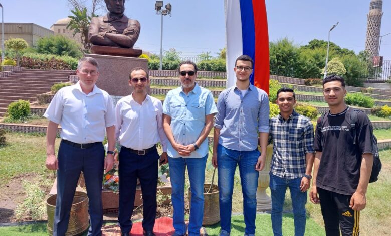 فى اطار احياء ذكرى ميلاد الشاعر الروسى الكبير “ألكسندر بوشكين” قام وفد من المركز الثقافى الروسى بالقاهرة برئاسة “مراد جاتين” وعدد من طلاب المدرسة الروسية وطلاب كلية الألسن، بوضع باقات الزهور أمام تمثال الشاعر والكاتب الروسى العظيم بوشكين بحديقة الحرية، وذلك بعد التنسيق مع اللواء/ خالد عبد العال محافظ القاهرة، والسيد/ أحمد الدميري مدير عام الادارة العامة للعلاقات العامة بمحافظة القاهرة، واللواء / محمد سلطان رئيس مجلس ادارة مشروع الحدائق المتخصصة، والمهندس / عربي عسل مدير حديقة الحرية.