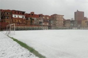 فى سابقه فريدة من نوعها وفى أجواء أوربية غطي الثلج يغطى ملاعب مركز شباب مدينة شبين القناطر على اثر العاصفة الجوية وتغير الأحوال الجوية في بعض مناطق مصر يوم امس الاثنين .