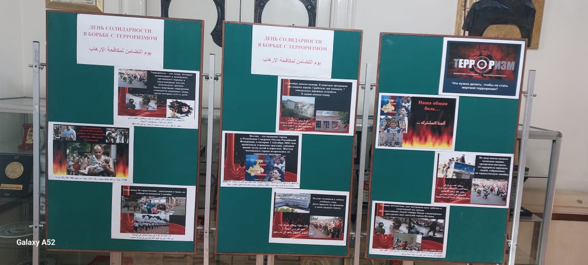 نظم المركز الثقافي الروسي بالقاهرة ندوة بمناسبة يوم التضامن لمكافحة الارهاب في الذكرى السنوية على العمل الارهابي ضد اطفال مدرسة بيسلان في اوسيتيا الشمالية في روسيا الذى راح ضحيته 330 من بينهم 186 طفل وجرح 750 شخص في ابشع عمل ارهابي ضد الاطفال تم على الاراضي الروسية.