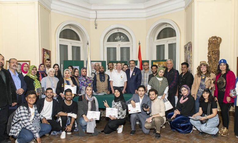 وفي الختام قام ” مراد جاتين ” و ” أحمد جمال ” و ” شريف جاد ” بتكريم الفنانيين المشاركين في معرض في حب روسيا .