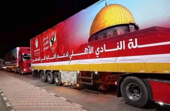 قافلة الأهلى محملة بمواد غذائية فى طريقها لمعبر رفح لدعم سكان غزة