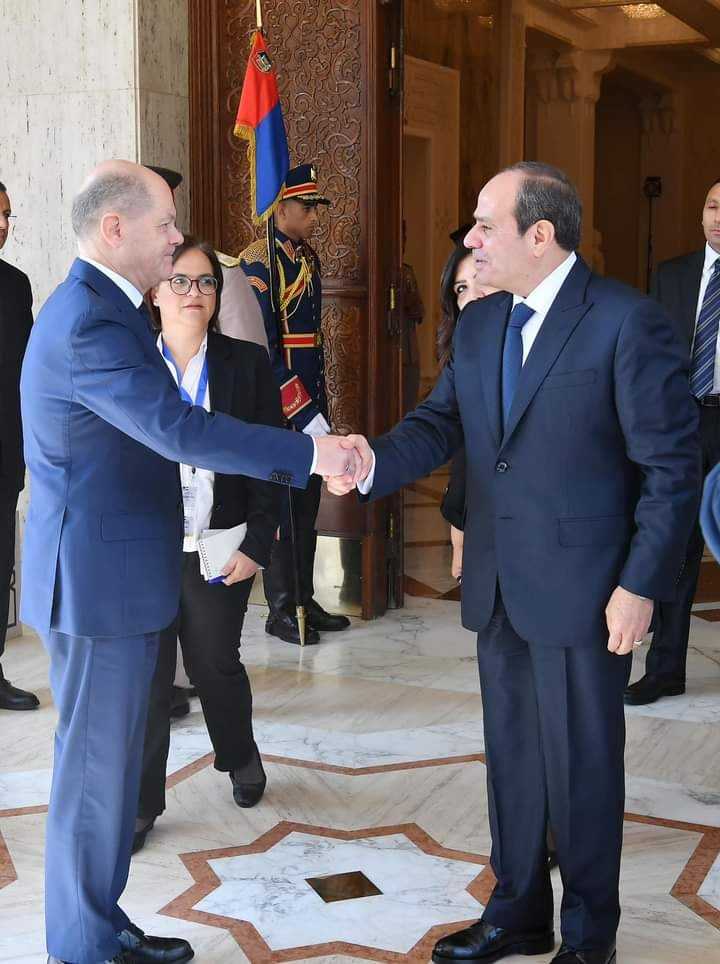 أرحب مجددا بالمستشار “أولاف شولتس فى مصر وأعرب عن أملى فى أن تكون هذه الزيارة خطوة رئيسية فى جهودنا لإنهاء الأزمة الحالية وتحقيق التعايش السلمى بين الشعوب .
