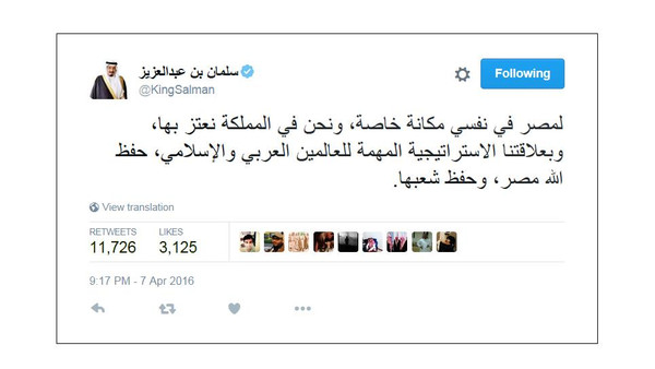 من جانبه، كتب خادم الحرمين الشريفين، الملك سلمان بن عبدالعزيز، على موقع التواصل الاجتماعي “تويتر”، الخميس، تغريدة قال فيها: لمصر في نفسي مكانة خاصة، ونحن في المملكة نعتز بها، وبعلاقتنا الاستراتيجية المهمة للعالمين العربي والإسلامي، حفظ الله مصر، وحفظ شعبها.