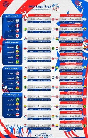 ومن المقرر أن يلتقي منتخب الأرجنتين، حامل اللقب نظيره الكندي، في الافتتاح يوم 20 يونيو القادم، على أن ينتهي دور المجموعات في 2 يوليو، على أن يُلعب دور الثمانية بين 4 و6 يوليو.