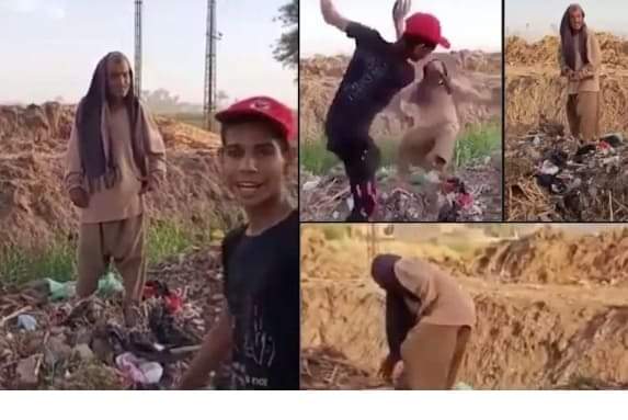 أظهر المقطع المصور لقطات صادمة للشابين وهما يتنمران على رجل مسن وإلقائه في مصرف مياه وسط القمامة وكان يستعد أحدهما للاعتداء على الرجل العجوز فيما يقوم آخر بتصوير الواقعة مما جعل الرجل العجوز يتعرض لإصابات في جسده.