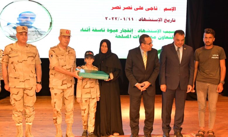 كما تم تكريم عدد من أسر الشهداء من المدنيين الذين ضحوا بالغالي والنفيس خلال تعاونهم مع القوات المسلحة لدحر جذور الإرهاب قبل استعادة الوضع الآمن وانطلاق عملية التنمية الشاملة المتكاملة بشمال سيناء، بالإضافة إلى تكريم عدد من الطلائع المتميزين في المجالات المختلفة، واختتمت الندوة بعزف السلام الوطني لجمهورية مصر العربية.