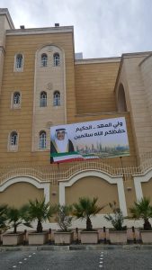 “سمو الأمير.. الساهر الأمين.. شعبكم على الدرب سائرين”. - صورة ولي العهد: في لافتة أخرى، ظهرت صورة سمو ولي العهد الشيخ صباح الخالد مع عبارة: