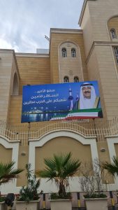 - صورة الأمير: تضمنت إحدى اللافتات صورة صاحب السمو الشيخ مشعل الأحمد، مرفقة بعبارة: