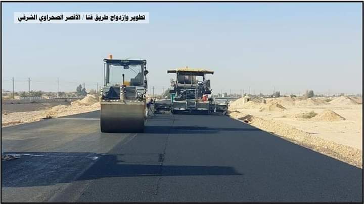 كما تابع الفريق مهندس كامل الوزير مشروع تطوير وإزدواج طريق قنا / الأقصر الصحراوي الشرقي بطول 108 كم حيث يشكل المشروع إنشاء إتجاه جديد بطول 108كم 3 حارة مرورية ورفع كفاءة الطريق القائم وإعادة رصفه باستخدام معدات تدوير طبقات الرصف الحديثة FDR وCIR ليصبح الطريق مزدوج بعرض إجمالي 23متر وبواقع 3 حارة مرورية لكل إتجاه مع تنفيذ 2 حارة طبان رصف بعرض 3.75م لميول الطريق