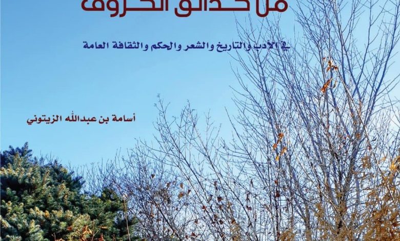 صدر حديثاً للكاتب الإعلامي الأستاذ أسامة بن عبدالله الزيتوني كتاب جديد تحت عنوان ” قطوف من حدائق الحروف ” وقد تناول الكتاب مجموعة من الحِكم والعبر والقصص التاريخية والشعر والطرائف ومعلومات عن شخصيات تاريخية وإسلامية متنوعة.