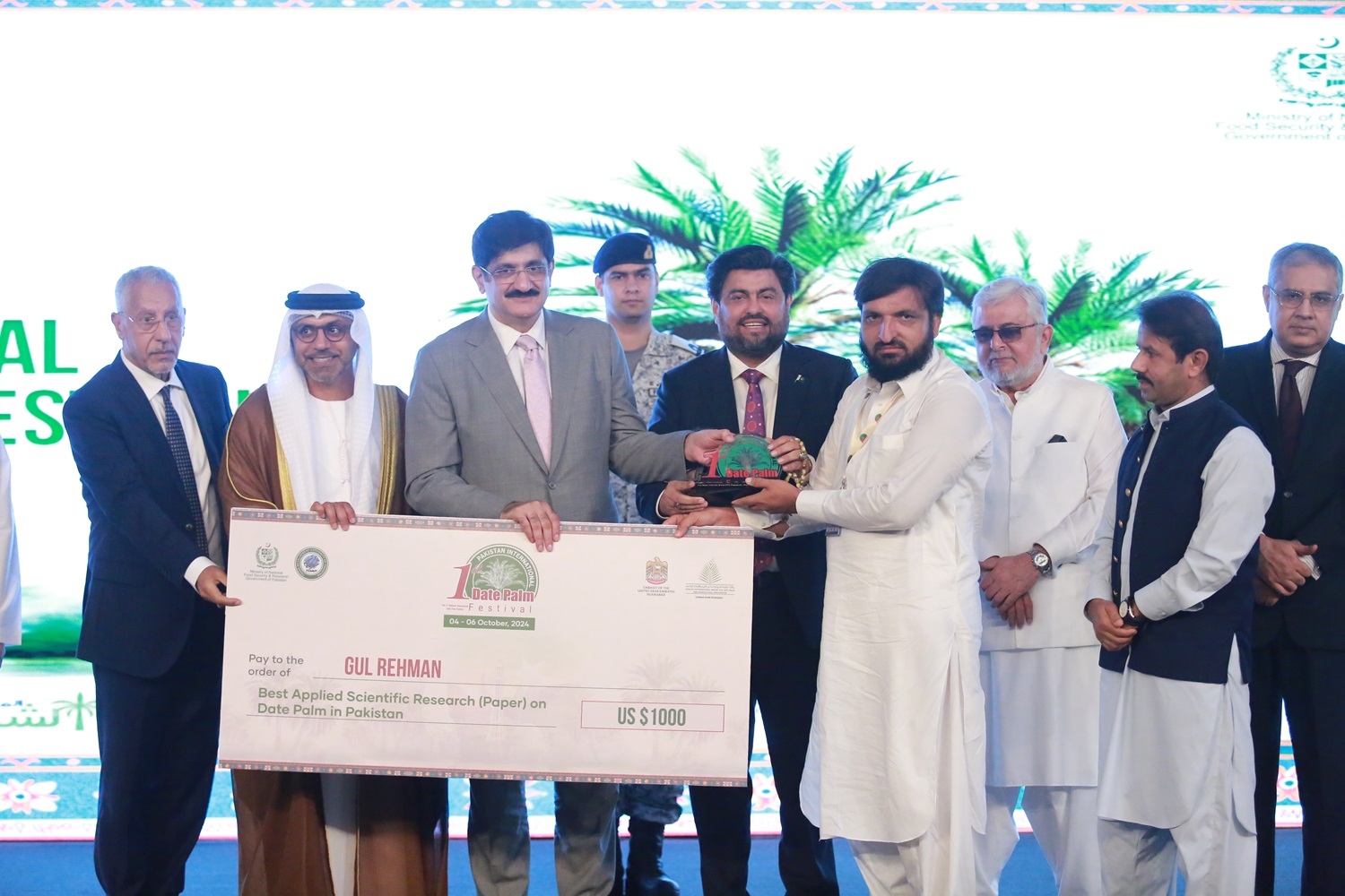 8. أفضل بحث علمي تطبيقي (ورقة بحثية) عن نخيل التمر في باكستان، فاز فيها السيد جول رحمان