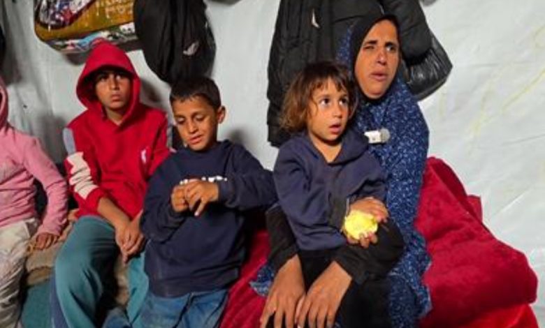 فقدت الفلسطينية الكفيفة هالة عوض “48 عامًا” زوجها في قصف إسرائيلي، وتعيش اليوم مع أطفالها السبعة في خيمة مؤقتة غرب مدينة خان يونس جنوبي قطاع غزة.