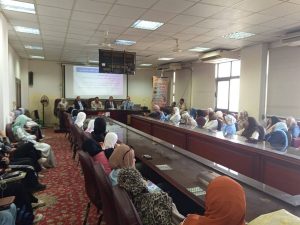 تحت رعاية االدكتور ناصر الجيزاوى رئيس الجامعه والدكتوره جيهان عبدالهادى القائم بعمل نائب رئيس الجامعه لشئون التعليم والطلاب والدكتور مجدى الشحات عميد كلية التربيه وبحضور الدكتور احمد عاشور وكيل الكليه لشئون التعليم والطلاب والدكتور علي عبد النبي حنفي وكيل الكلية لشئون البيئه.