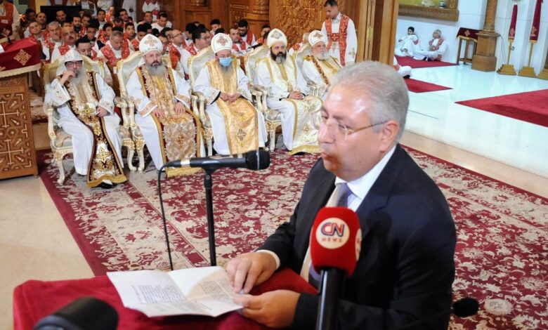 يشرفني بداية أن أنقل لكم نص برقية تهنئة السيد رئيس الجمهورية عبد الفتاح السيسي الي المواطنين المصريين الاقباط بالخارج بمناسبة عيد الميلاد المجيد، وهذا نصها: