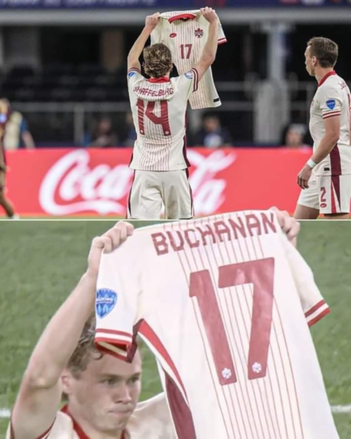 *-لاعب كندا جاكوب شافيلبورج بعد تسجيله هدف على فنزويلا يدعم بوكانان الذي تعرض لكسر في الساق اثناء التدريبات .